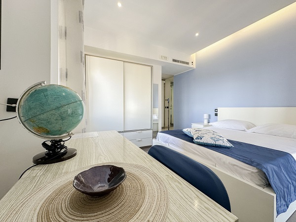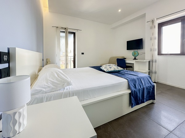 Realizzata in stile moderno,la camera è dotata di servizi privati, televisore, climatizzatore e wi-fi h24. Ogni stanza vanta un balcone con spettacolare vista sul mare e sul Vesuvio. *tripla su richiesta